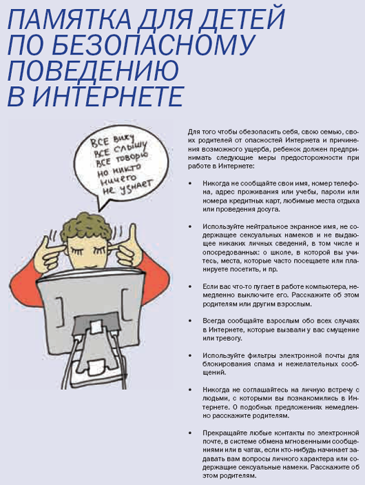 Памятка для детей по безопасному поведению в Интернете